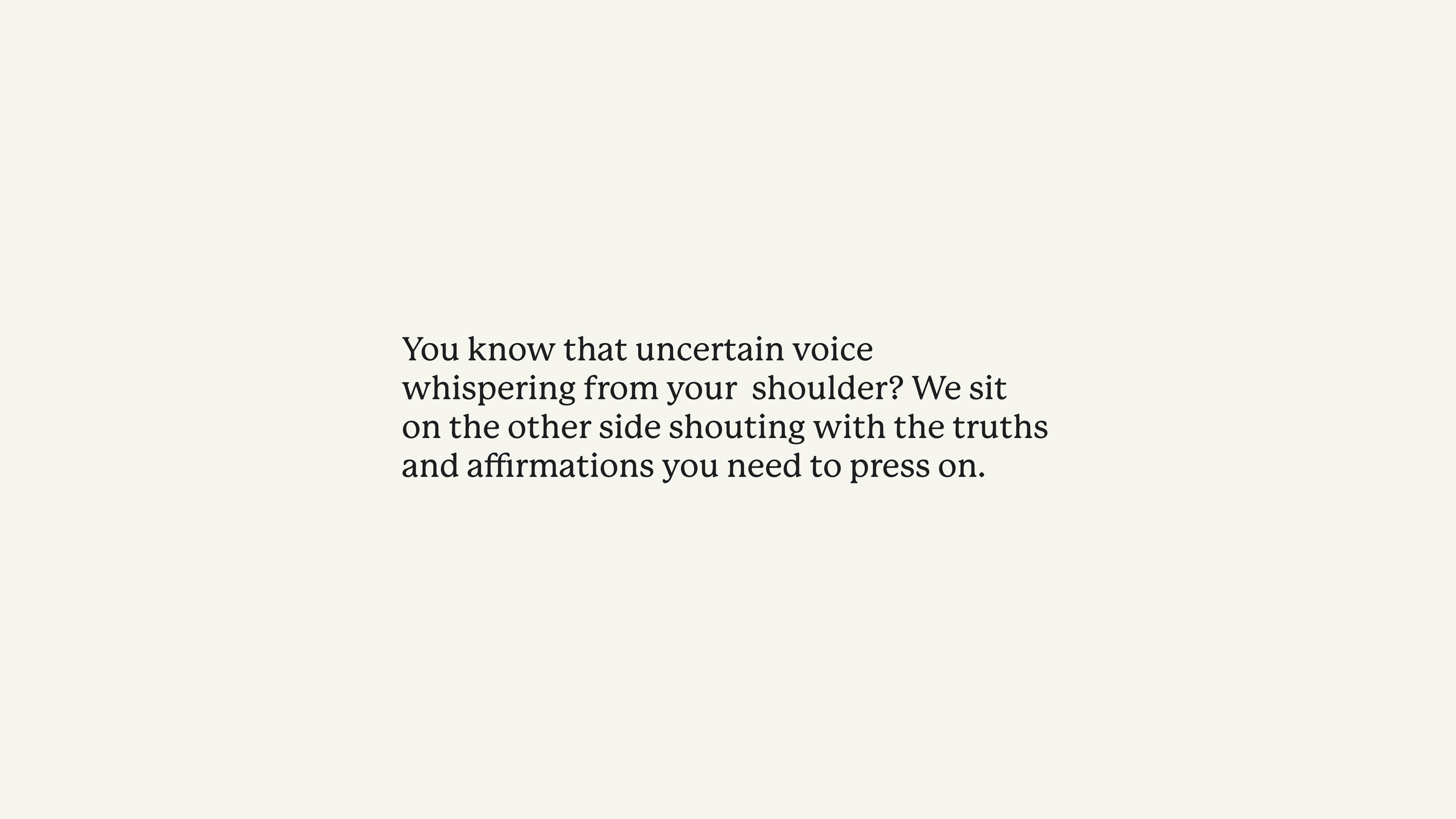 You know that uncertain voice whispering from your shoulder? Wayfinder sits on the other side shouting with the truths and affirmations you need to press on. Whatever you’re going through. Whatever you’re going to. They’re with you on your way.
